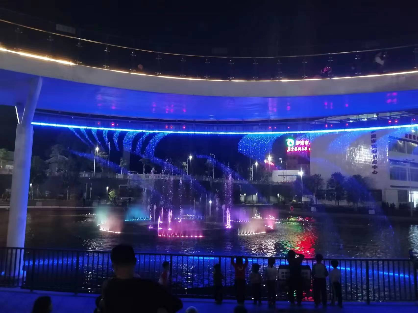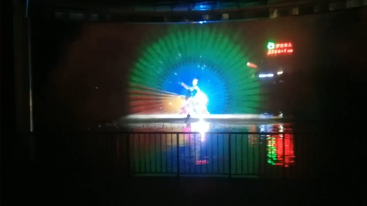 随着音乐节奏交换交替水幕投影融入人文历史和民风民俗等元素。上演了南湖晚照,云桥飞瀑,流光喷泉、凌云山门、高山流水、雕塑水帘等创意新颖的水秀节目