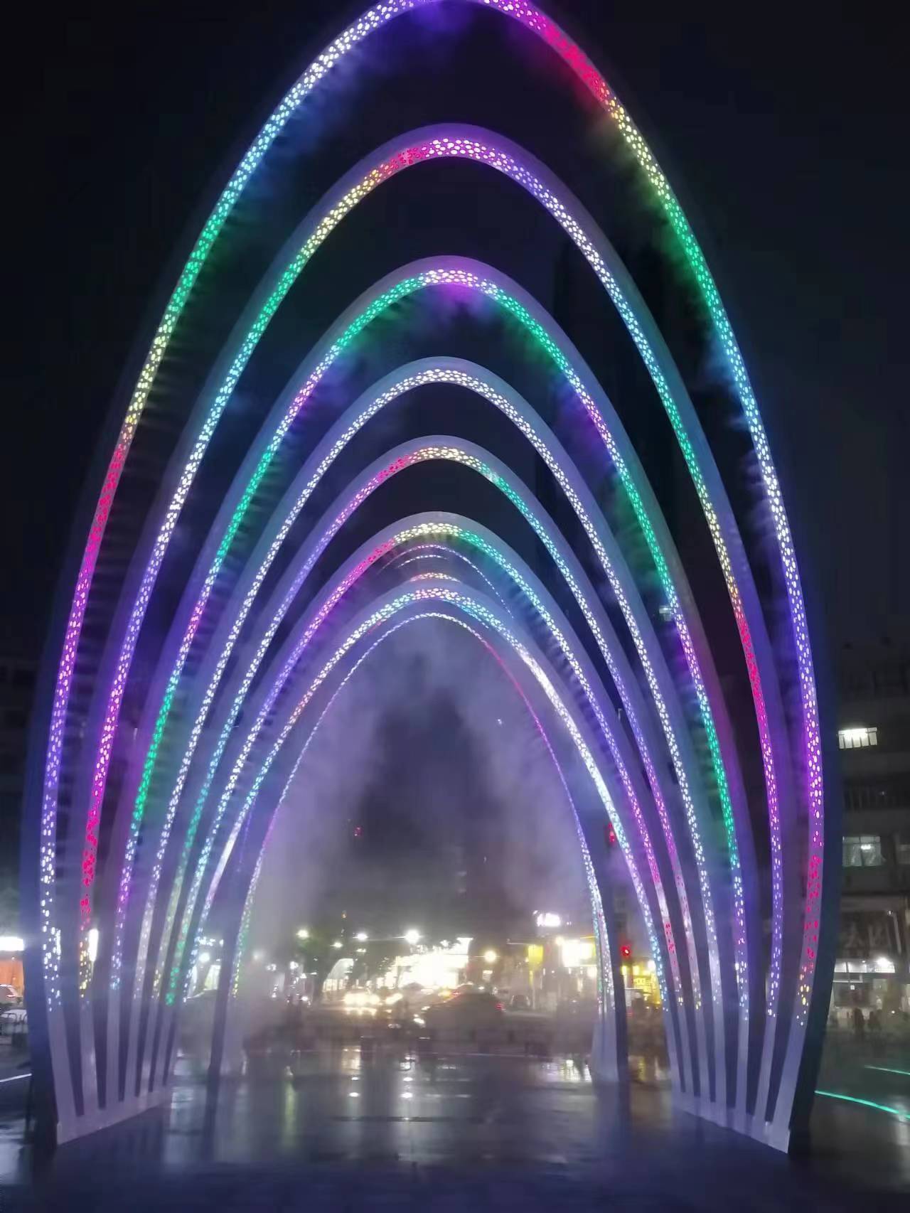 项目设计共分布六个区域:区域一:南湖晚照灯光水秀 区域二:云桥飞渡(数码水帘) 区域三:流光喷泉(动感亮泉) 区域四:凌云山门(雕塑喷雾) 区域五: 高山流水(跌水) 区域六:雕塑水帘