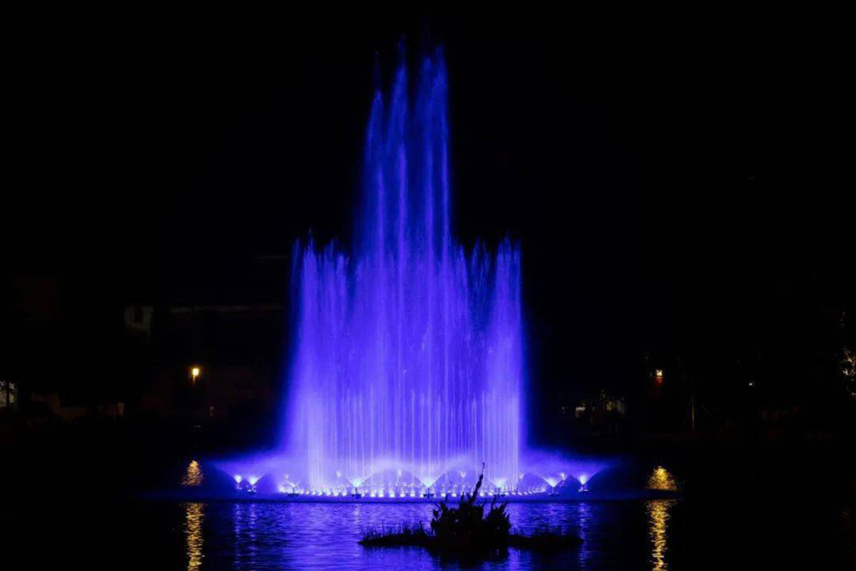 当音乐声响起时,万千水柱刹那升起,舞动着身姿,随着优美动听的经典音乐节奏,时而温柔袅袅,时而一柱冲天。夜幕下,五彩缤纷的灯光照射在升起的水柱上和散落的水雾上,时而像美丽绽放的花朵,时而像展翅起舞的蓝色精灵........形成了一幅幅美丽的画卷。